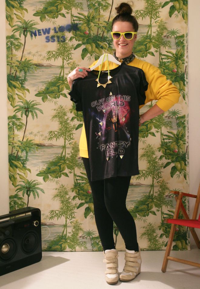 Last Friday I went to the presentation of the Spring/ Summer 2013 collection of New Look. While outside it was snowing and freezing in Amsterdam, inside it was cosy and warm with a collection with beautiful colours, patterns and thin fabrics. The themes were: Pagan cowgirl, Pleasantville and Eastern trail. My favourite item is this black shirt with a print, looking a bit like the out of space Balenciaga sweater. I think the collection is best worn when combining items of the different themes all together. The last two photos are from the male collection, the tiger shirt and printed blouse are also wearable for women I think.  This collection will make an interesting summer!